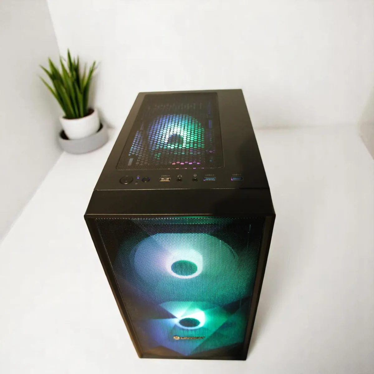 Usamos una combinación de componentes nuevos y reacondicionados de alto rendimiento. La caja y la fuente de alimentación son siempre nuevas: la caja por estética, para que tu PC sea nuevo en toda la superficie visible. Y la fuente de alimentación, ya que priorizamos la fiabilidad ante todo.